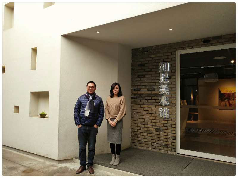 如是美术馆运营总监(右)与负责该项目项目经理孙楼为庆祝美术馆运营效果良好合影留念