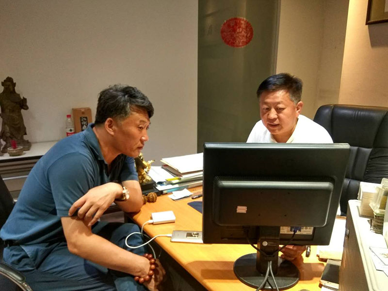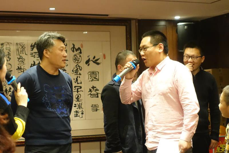 如是书店创始人郝照明(左)与荣安装饰总经理史勇