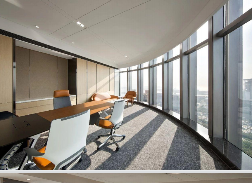简约格调的办公室设计,首先体现在空间布局的合理性上。以青岛荣安办公室为例,摒弃繁琐的隔断与复杂的布局结构,采用开放式或半开放式的空间规划,让自然光线充分洒入每一个角落,营造出通透明亮的视觉感受。例如,以简洁的玻璃隔断划分不同功能区域,既保证了空间的独立性,又不失通透感,使员工在工作时能够感受到开阔的视野,减少压抑感,从而提升工作效率。