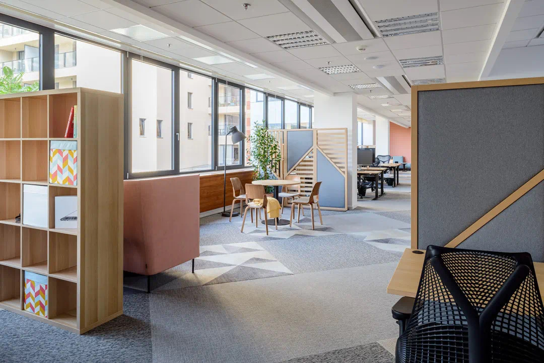 依据作业区域。暖色是扩张色,冷色是收缩色,小的作业空间或个人作业空间地面能够挑选暖色冷色,或简略亮堂的木地板,在视觉上会让人有面积扩张的感觉。