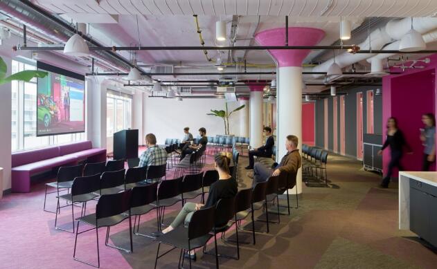 03创意人员办公室用亮色工作的性质是设计色彩时要考虑的因素,跟创意相关的工作要使用明亮、鲜艳、跳跃的颜色作为点缀,刺激员工的想象力。