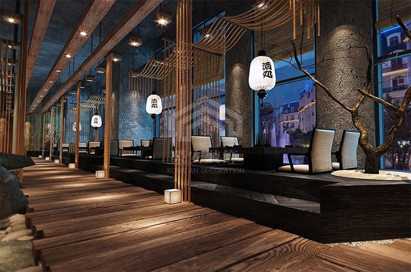 有些客户为啦!省钱,节省装修费用。去找一些散装工队来为自己装修。其实这是一个得不偿失的方法。本案桃源食屋日式餐厅设计装修于整体空间试图营造出日式现代简约与原木温闰质感氛围。外观上,透过阶梯、平台、屋檐与清水模框架围塑出框景,框内呈现居场式的绳结,使桃源食屋日式餐厅设计装修成为空间的视觉焦点。